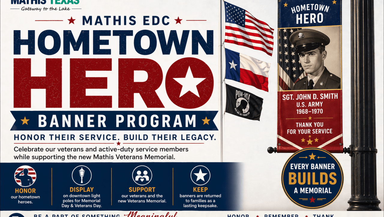 The Mathis Economic Development Corporation is proud to launch the Hometown Hero Banner Program, a community-wide tribute honoring the veterans and active-duty military personnel who call Mathis home. Every banner […]
